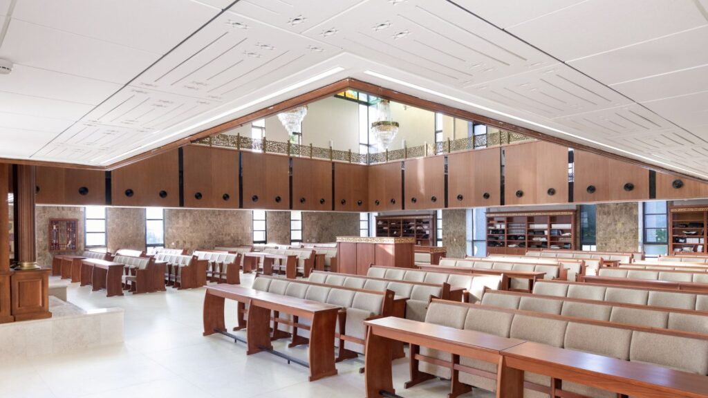 Ariela House Auditorium Project designed by Mayzlitz Kasif Roitman Architects. In this unique project, Hecht & Ephraim created a spectacular solution for the hall ceiling. Using custom-made pyramid-shaped gold tin tiles, the ceiling adds a dimension of luxury and sophistication to the space along with improved acoustics. The tiles were designed with great precision in […]