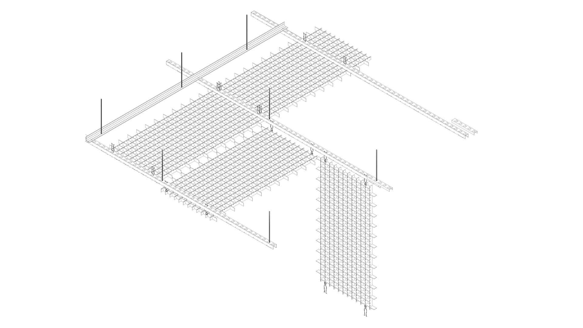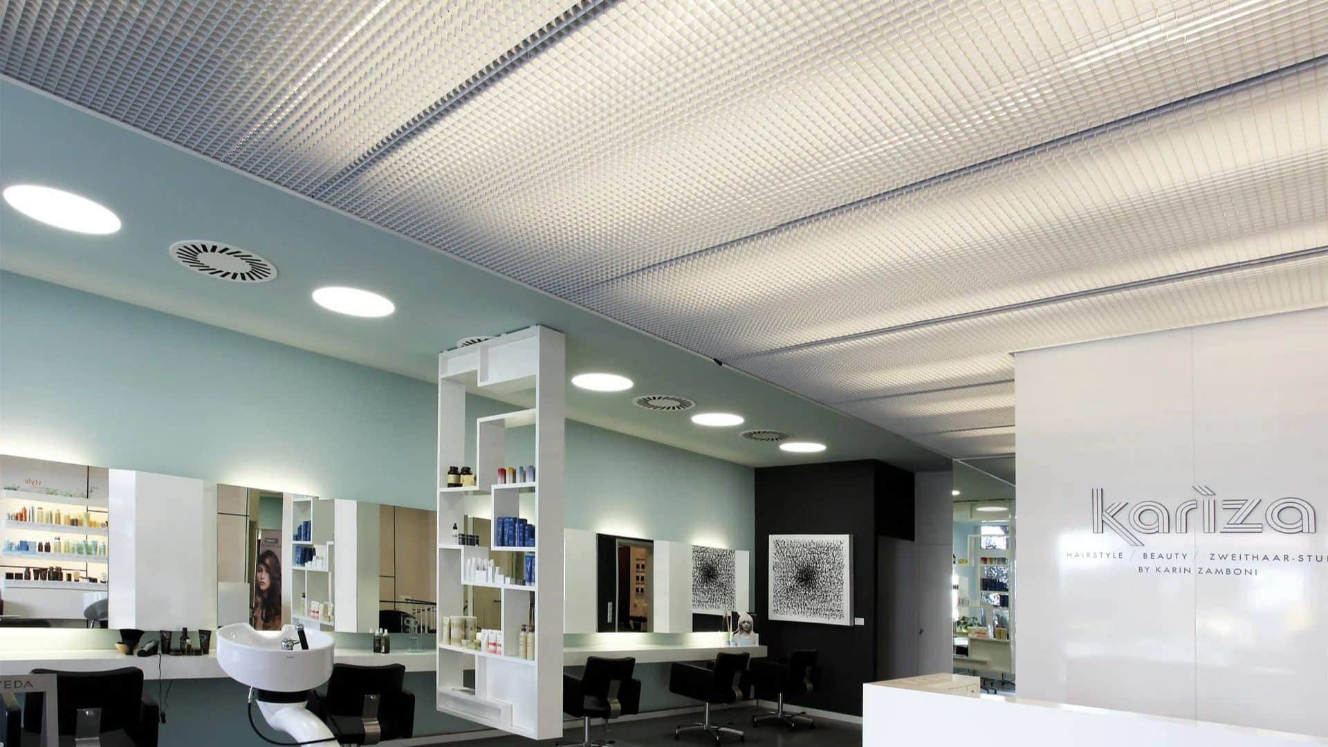 A quadra ceiling is defined by its light and airy nature, which can be enhanced through perforations.