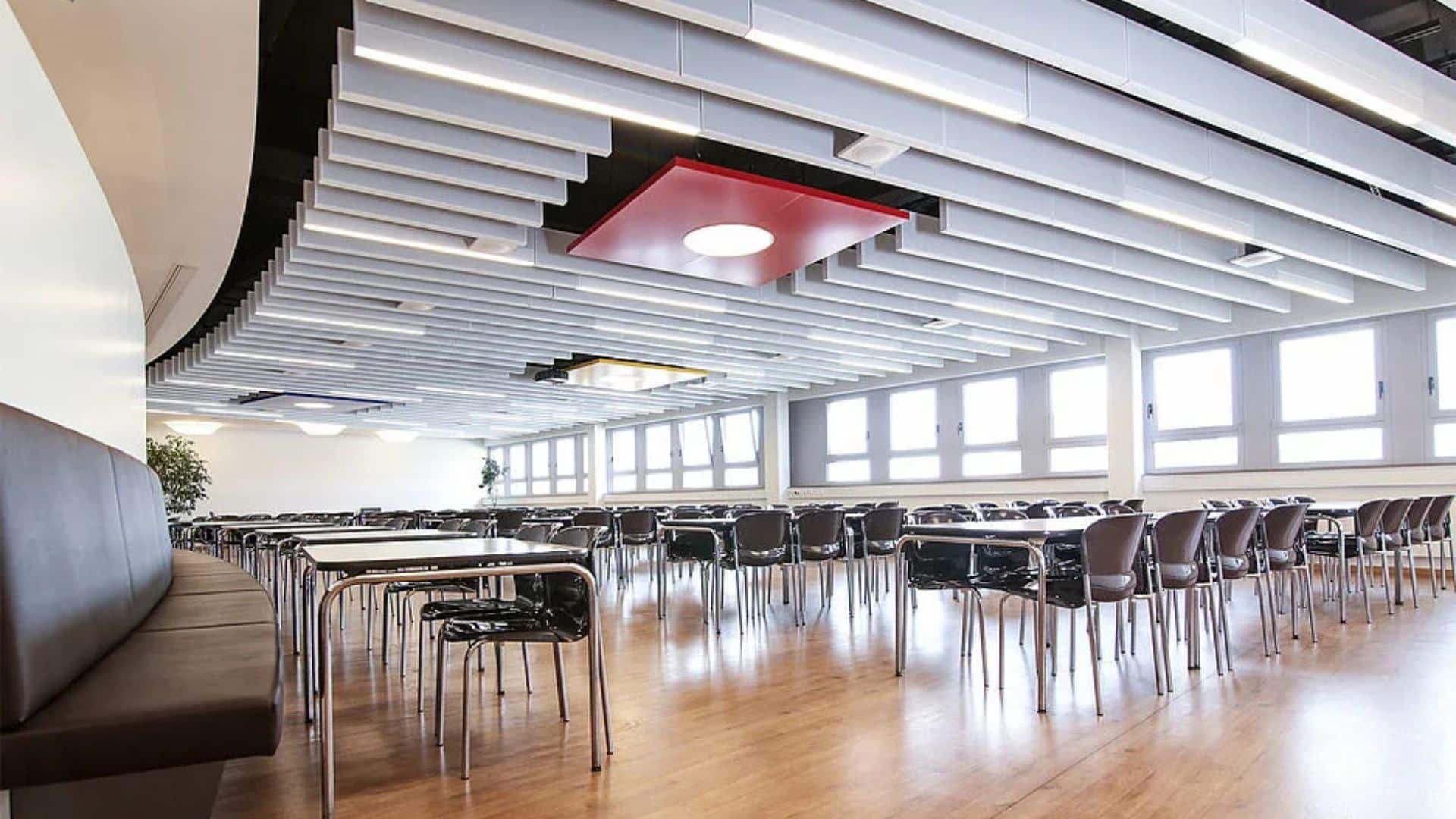 These raft ceilings, ideal for improving room acoustics, are preferred as cooling ceilings in office buildings and educational institutions due to their durability over a long period of time. They can also be ideally combined with concrete-based ceilings. Depending on the material and surface, dur-SOLO is also suitable for use as a reflective surface for light deflection.