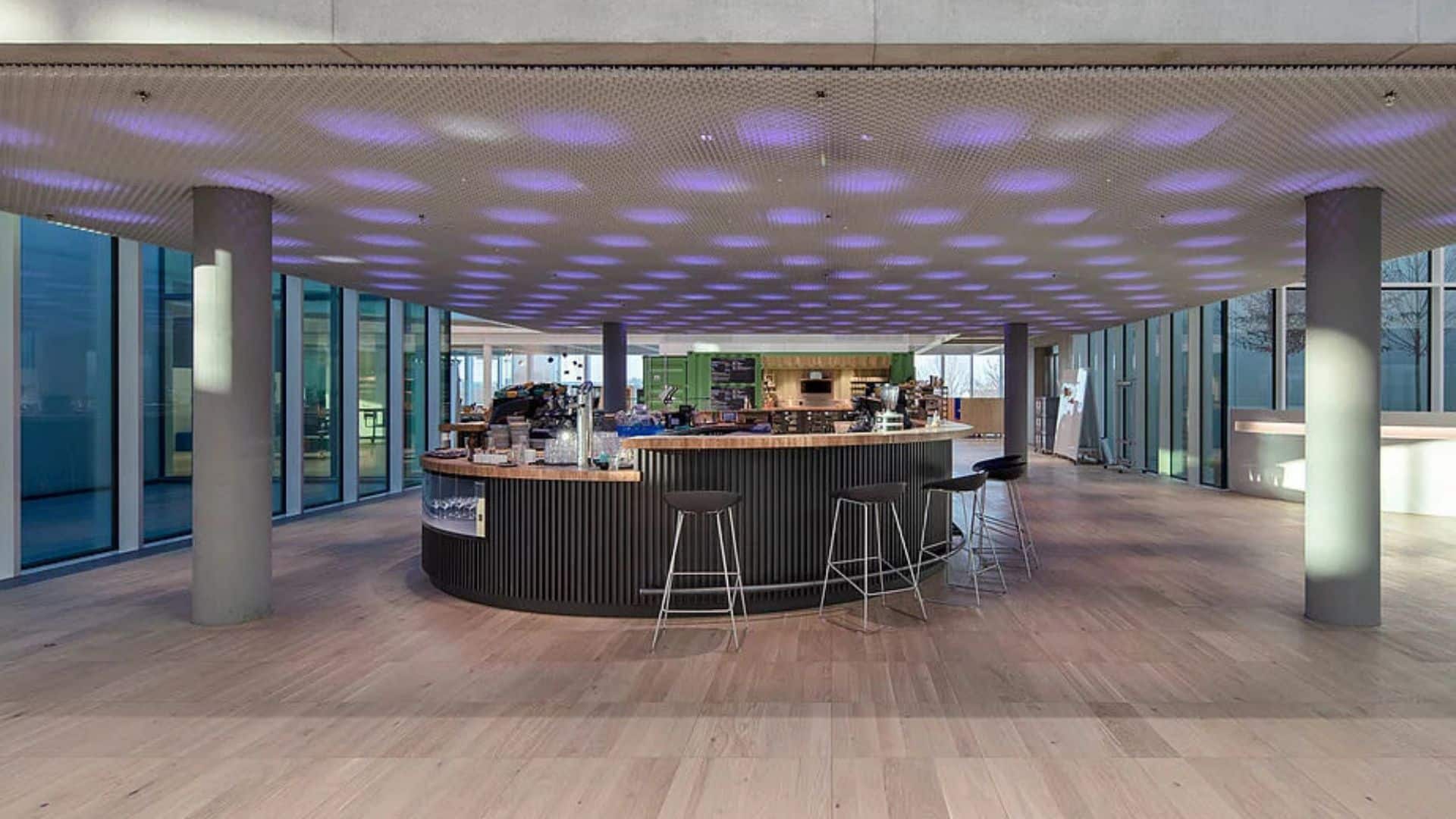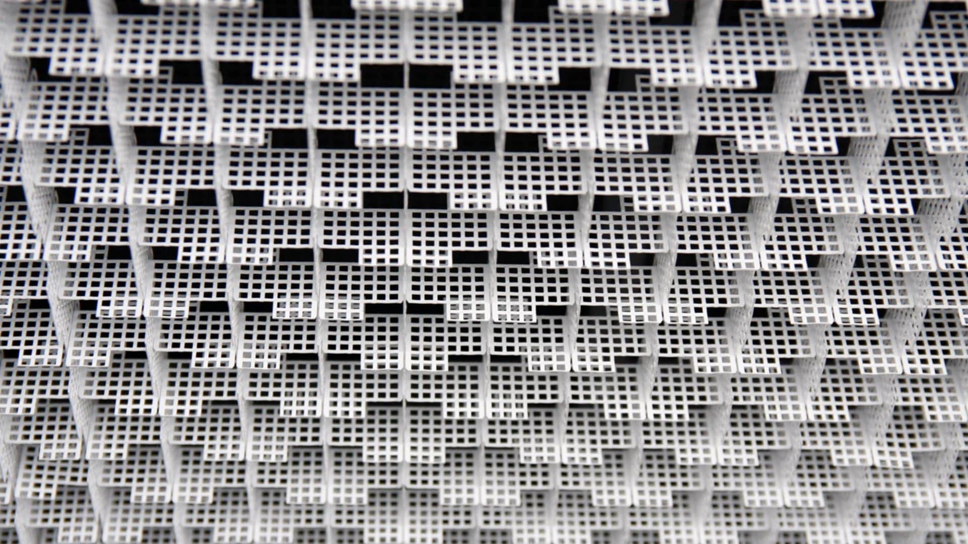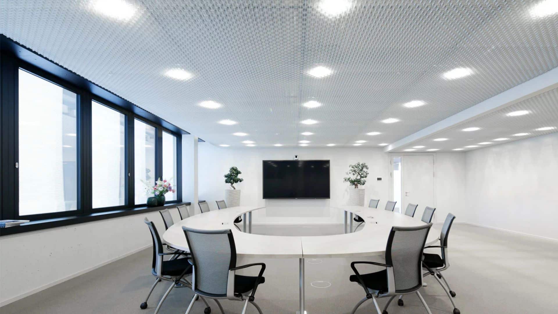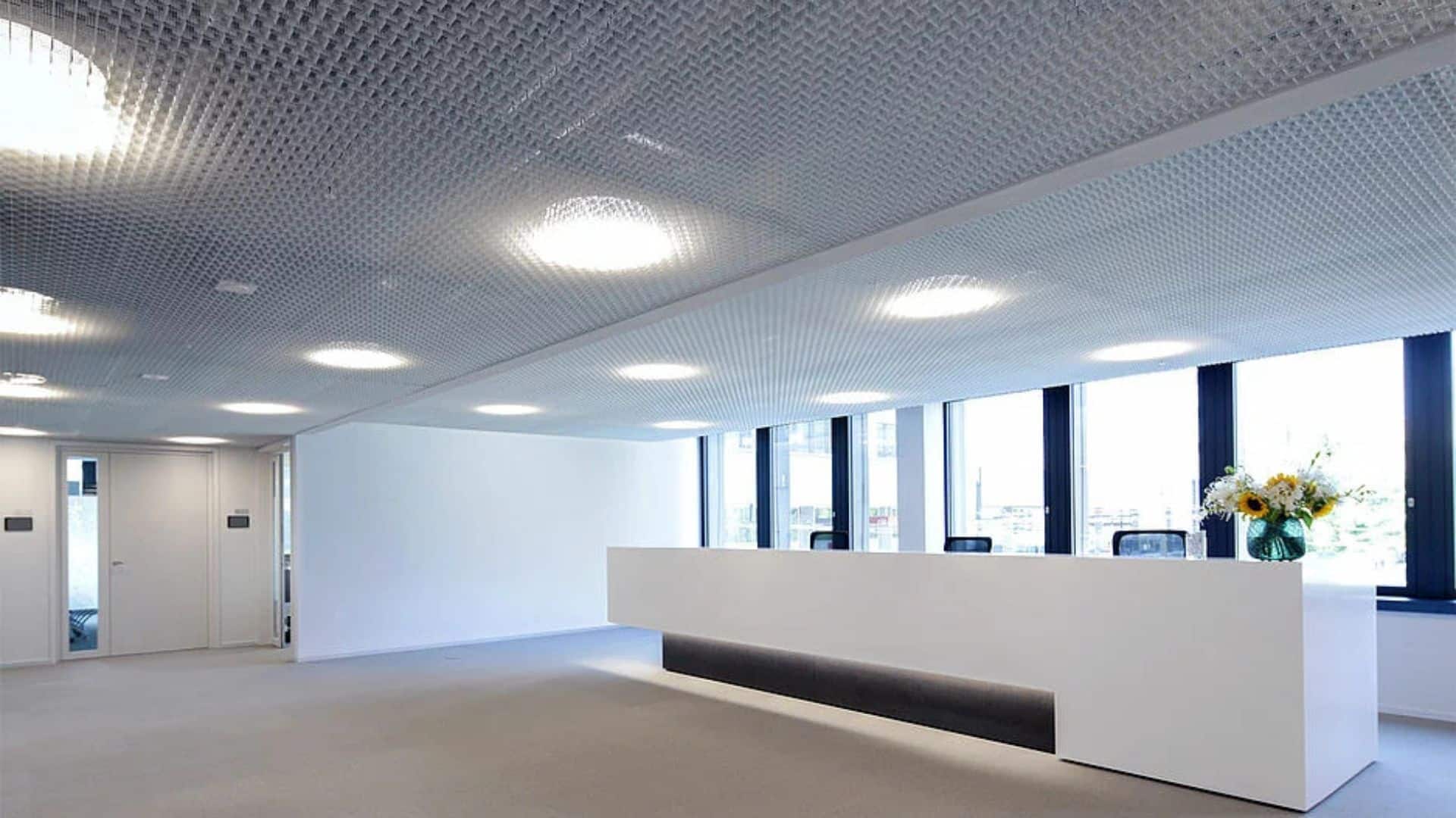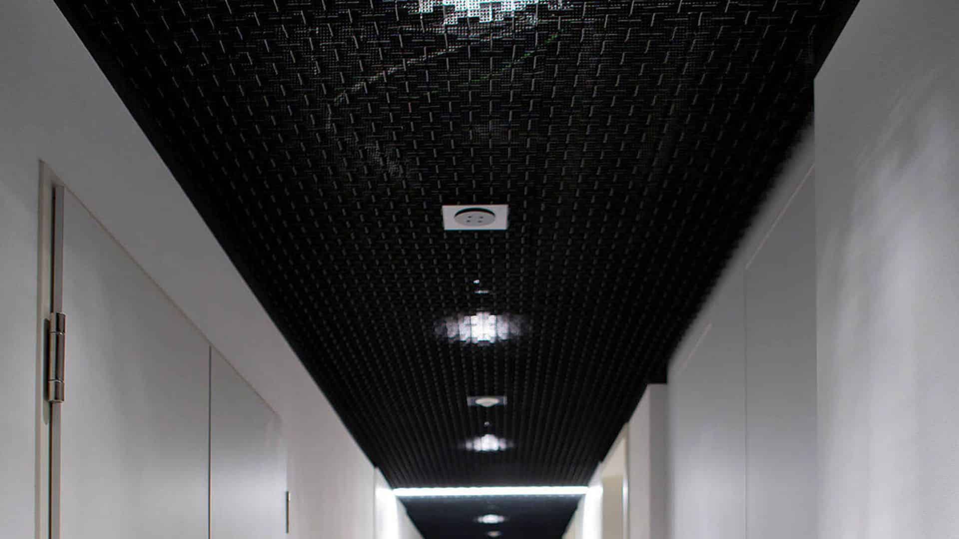 The ceiling has cells measuring 33.5*33.5 mm and a perforation of 3.5 mm which creates a special process on the surfaces of the aluminum blades in such a way that their perforated edges reflect the flow of light, thus providing a unique and modern look.
