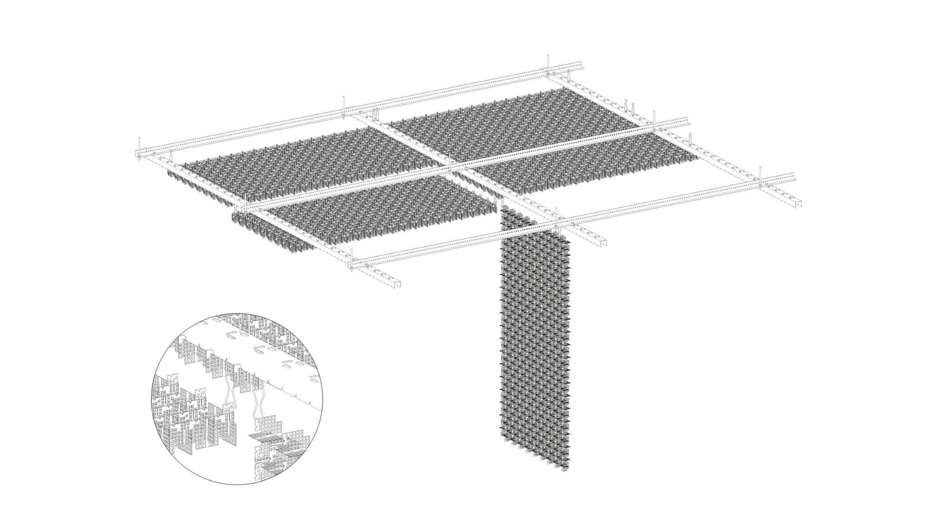 T-cell open ceiling – a ceiling with a louver structure with a single blade that injects a personal design into any project characterized by metallic lightness.
