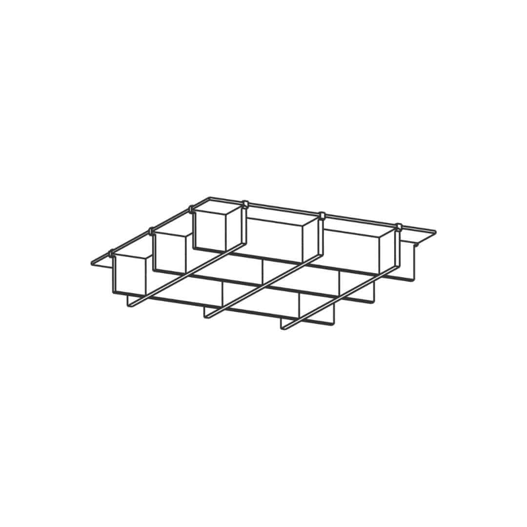 Grid (גריד) – תקרת אריחי פוליאסטר עם חריצים גאומטריים בסידור רשת מודרנית, שמוסיפה עומק, קצב ואסתטיקה מינימליסטית לחללים מסחריים.