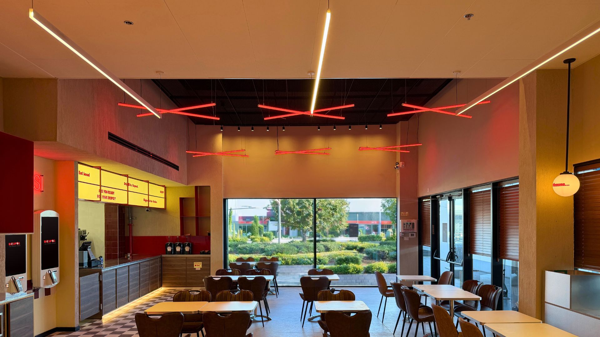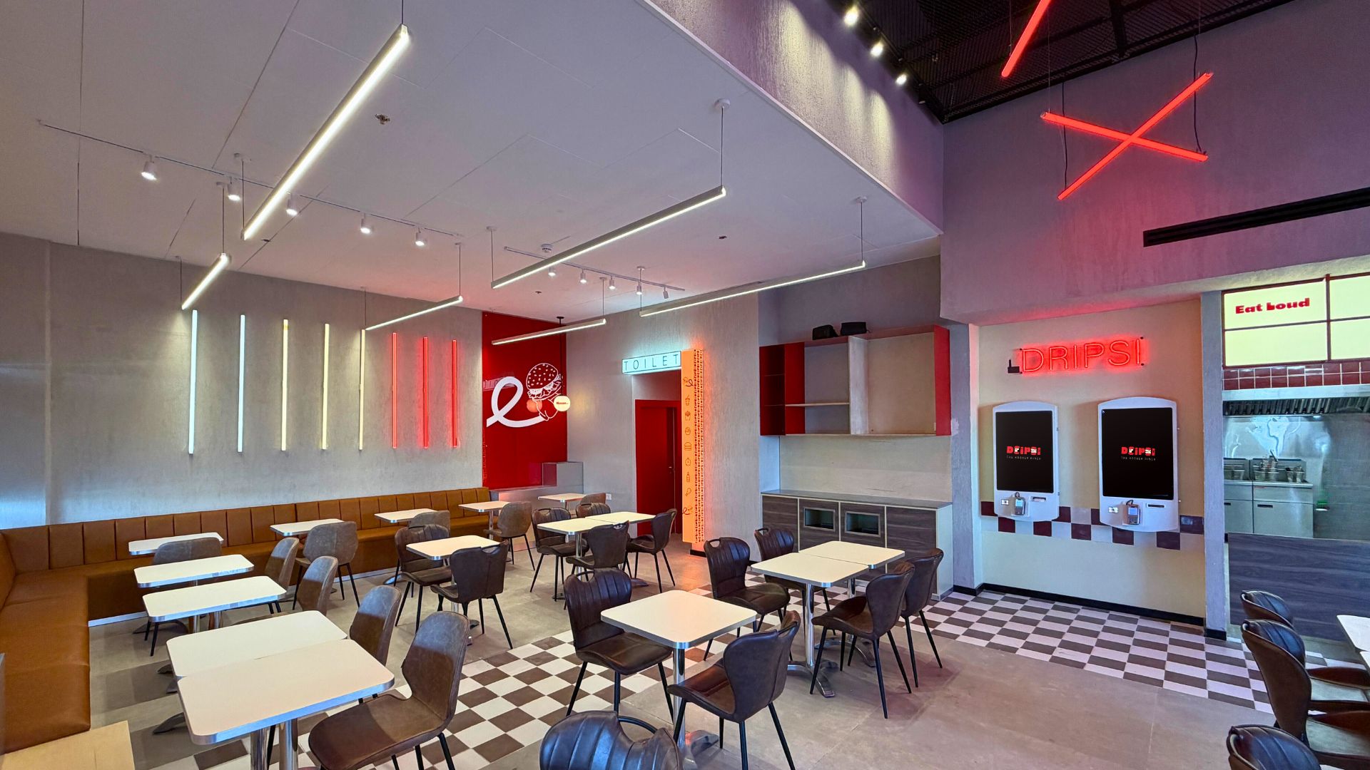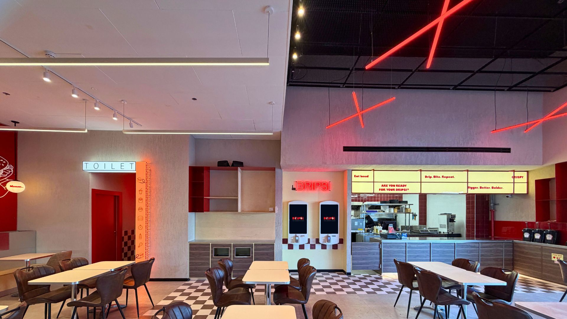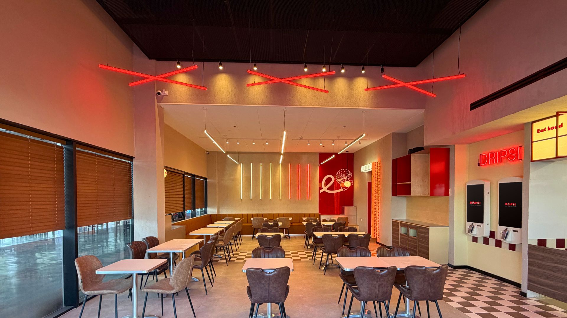 בפרויקט Dripsi Diner נבנה חלל קולינרי עם אופי אורבני, מחוספס ומדויק, כזה שמחבר בין חוויה ויזואלית חזקה לנוחות אקוסטית ופונקציונליות יומיומית.