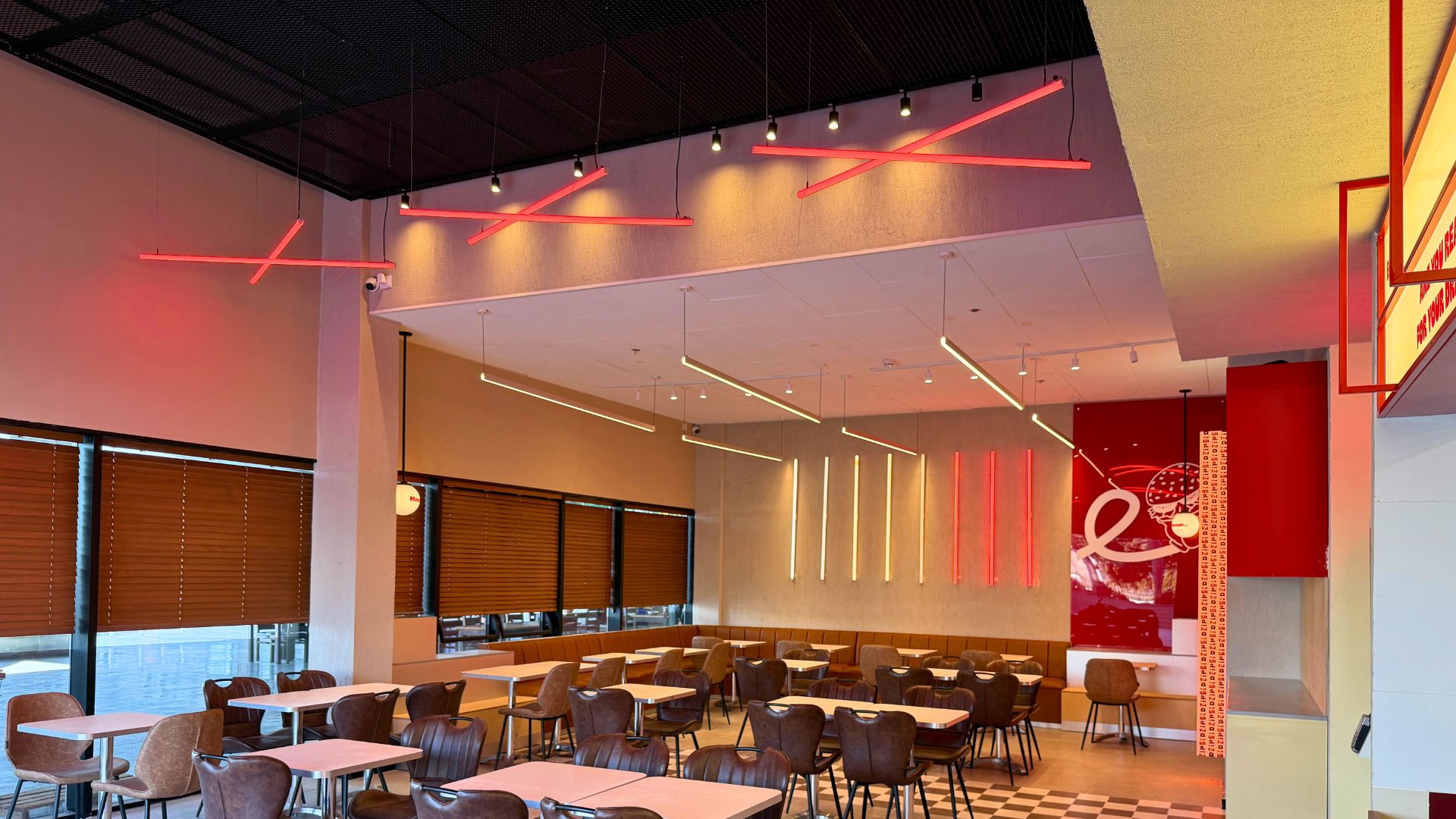 היכולת לשלב בין תקרה דקורטיבית גלויה לבין פתרון אקוסטי שקט ומרוסן מאפשרת יצירת חלל מאוזן, כזה שמגיב לשימושים השונים של המסעדה לאורך היום.