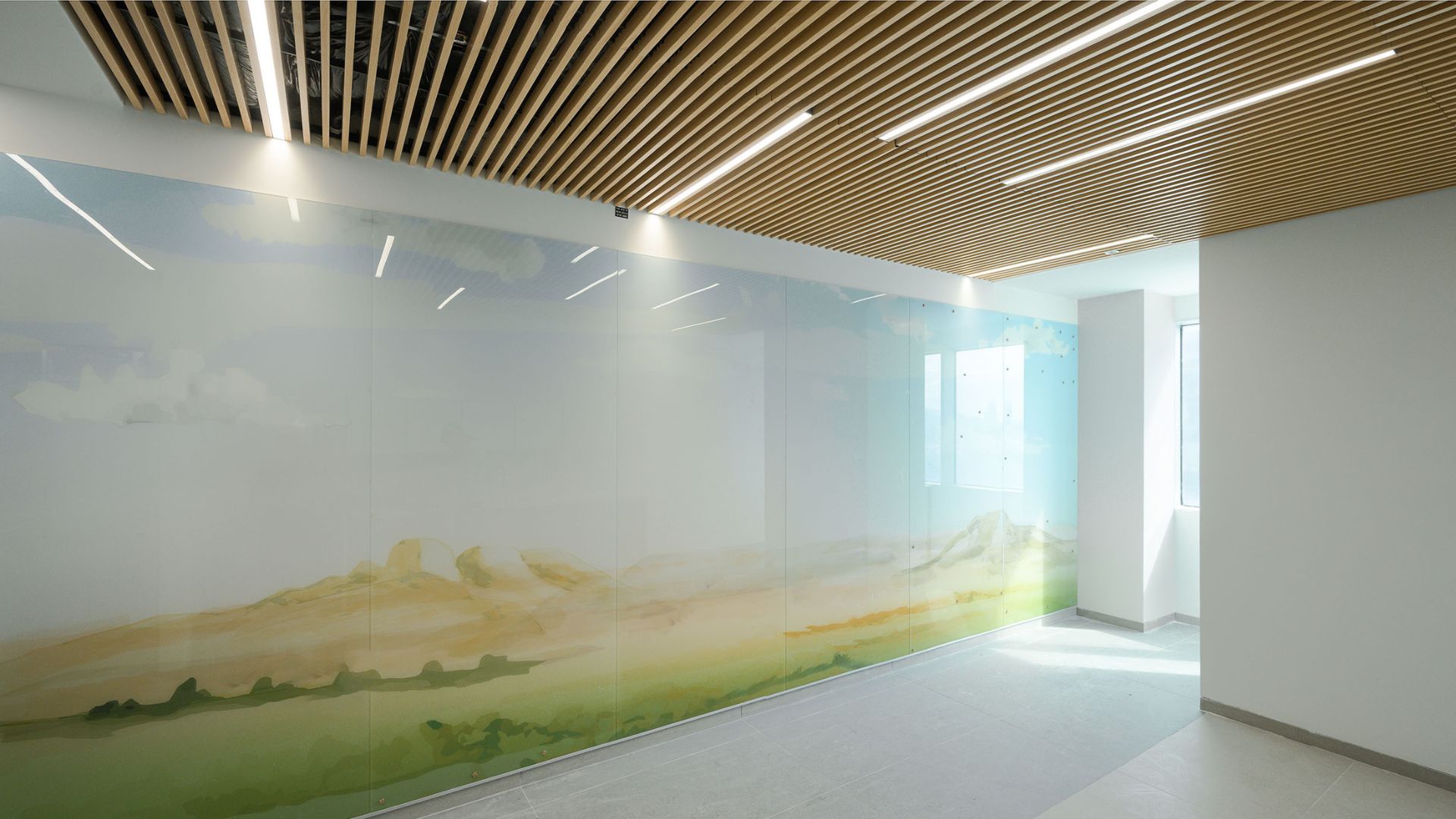 מערכת ה-LG מציעה גמישות תכנונית גבוהה ופריקות, עם אפשרות לבחירת מידות אריחים 60/60 ו-60/120 ס"מ, וכן מגוון גבהים ורוחבים של קורות. הבחירה בגוון דמוי עץ מוסיפה רובד חומרי חם לחלל ציבורי רחב־היקף, תוך שמירה על מראה טכנולוגי נקי.
